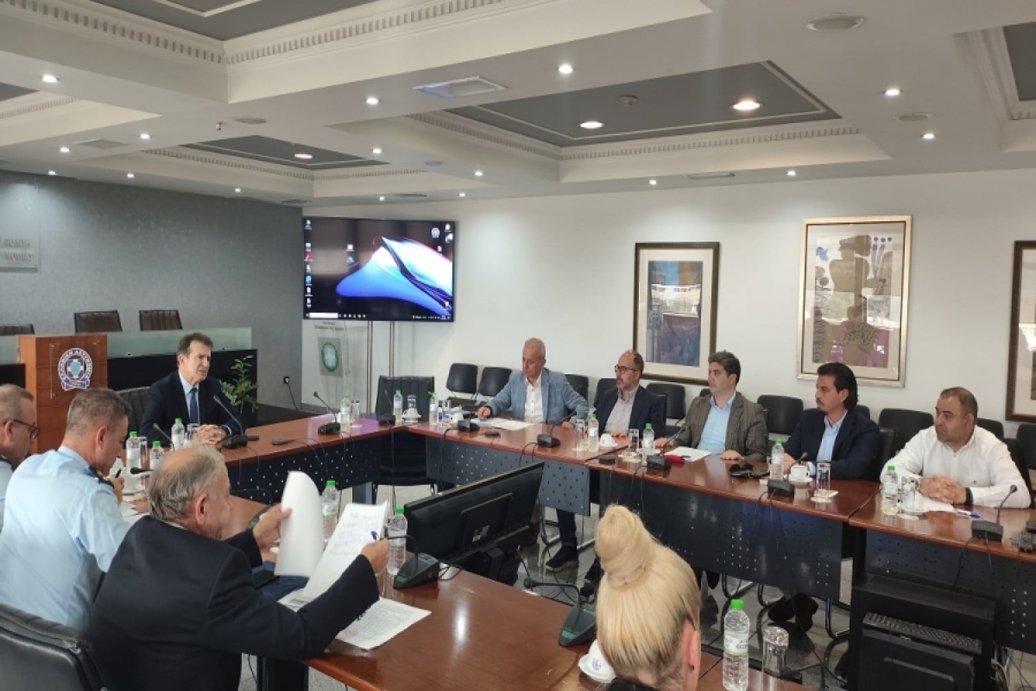 Στη σύσκεψη πήραν μέρος ο Υπουργός Προστασίας του Πολίτη κ. Μιχάλης ΧΡΥΣΟΧΟΪΔΗΣ και εκ μέρους του Αρχηγού της Ελληνικής Αστυνομίας Αντιστρατήγου κ. Δημητρίου ΜΑΛΛΙΟΥ, ο Γενικός Διευθυντής Ασφάλειας και Αστυνόμευσης/Α.Ε.Α Ταξίαρχος κ. Ελευθέριος ΧΑΡΔΑΛΙΑΣ και ο Διευθυντής της Διεύθυνσης Ένστολου Προσωπικού κ. Δημήτριος ΠΟΛΥΖΟΣ.
