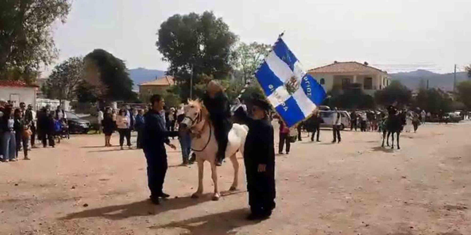 Ακολούθως ο πατήρ Διονύσιος Καλογερόπουλος παρέδωσε τη σημαία στον Νίκο Μίχο, που μαζί με τους άλλους ιππείς την περιέφεραν στην πόλη, ενώ επιστρέφοντας τους απονεμήθηκαν τιμητικά μετάλλια.