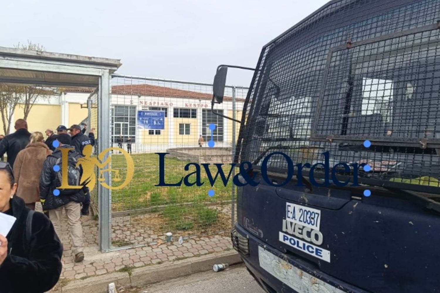 Πέντε κλούβες με άνδρες των ΜΑΤ από την Αθήνα, δυο από την Θεσσαλονίκη, μια από την Καρδίτσα και δυο από την Λάρισα, δημιούργησαν ένα «μεταλλικό τοίχος» μπροστά από το δικαστήριο, ενώ αστυνομικοί έλεγχαν κάθε κίνηση στους χώρους.