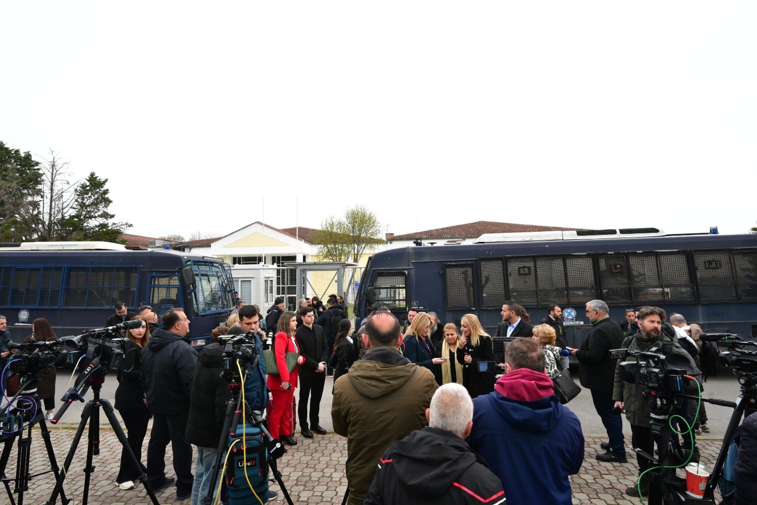 Τουλάχιστον πέντε λεωφορεία ξεκίνησαν από τη Θεσσαλονίκη κατά τις επτά το πρωί, με προορισμό το συνεδριακό κέντρο του Πανεπιστημίου Θεσσαλίας (Γαιόπολις-πρώην ΤΕΙ), που έχει «μεταμορφωθεί» σε δικαστική αίθουσα.