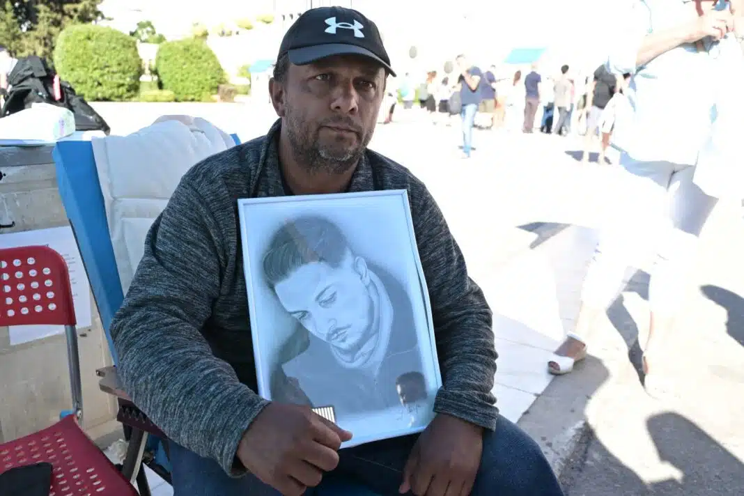 Από το πρωί της Δευτέρας (15/9) παραμένει στο σημείο όπου είναι χαραγμένο το όνομα του γιου του, στο αυτοσχέδιο μνημείο που έχει στηθεί μπροστά από το Μνημείο του Άγνωστου Στρατιώτη, στη Βουλή και δηλώνει πως «δεν πάει άλλο».
