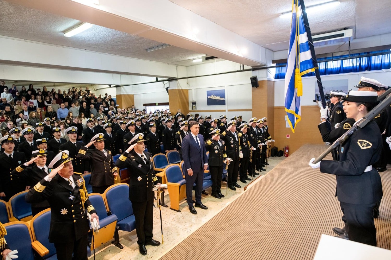 Στην τελετή παρέστησαν επίσης, ο Αρχηγός του Λιμενικού Σώματος – Ελληνικής Ακτοφυλακής, Αντιναύαρχος Λ.Σ. Τρύφωνας Κοντιζάς, ο Α’ Υπαρχηγός του Λ.Σ. – ΕΛ.ΑΚΤ., Αντιναύαρχος Λ.Σ. Χρήστος Κοντορουχάς, ο Β’ Υπαρχηγός του Λ.Σ. – ΕΛ.ΑΚΤ., Αντιναύαρχος Λ.Σ. Φώτιος Κιάμος, καθώς και ανώτατοι και ανώτεροι αξιωματικοί του Πολεμικού Ναυτικού και του Λιμενικού Σώματος – Ελληνικής Ακτοφυλακής.