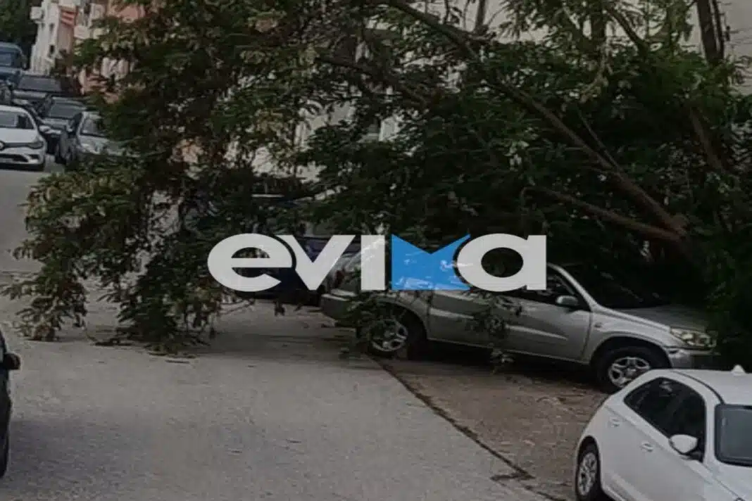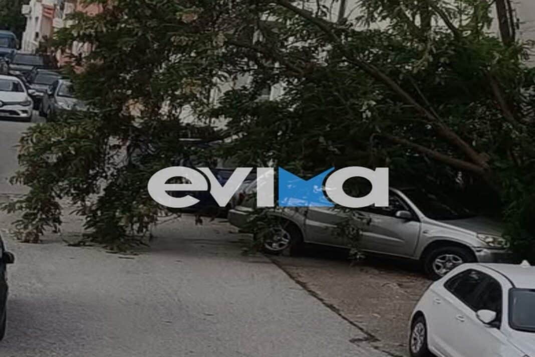 Ενα μεγάλο δέντρο έπεσε πάνω σε αυτοκίνητο το μεσημέρι της Δευτέρας (28/4) στην Εύβοια λόγω των ισχυρών ανέμων.