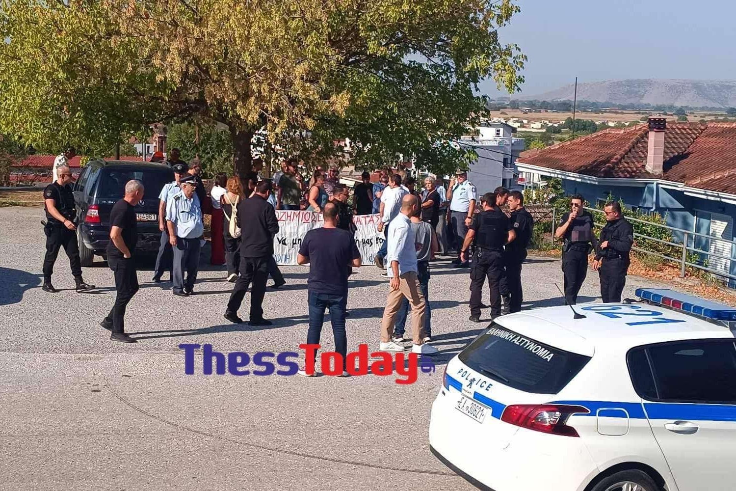 Σύμφωνα με την ιστοσελίδα Thesstoday, διμοιρία της ΟΠΚΕ έστησε ανθρώπινο κλοιό μπροστά από τους διαδηλωτές, οι οποίοι θέλουν να εκφράσουν στον Πρωθυπουργό τα παράπονά τους για μια σειρά ζητημάτων, όπως: αποζημιώσεις, αντιπλημμυρικά έργα και θωράκιση της ευρύτερης περιοχής.