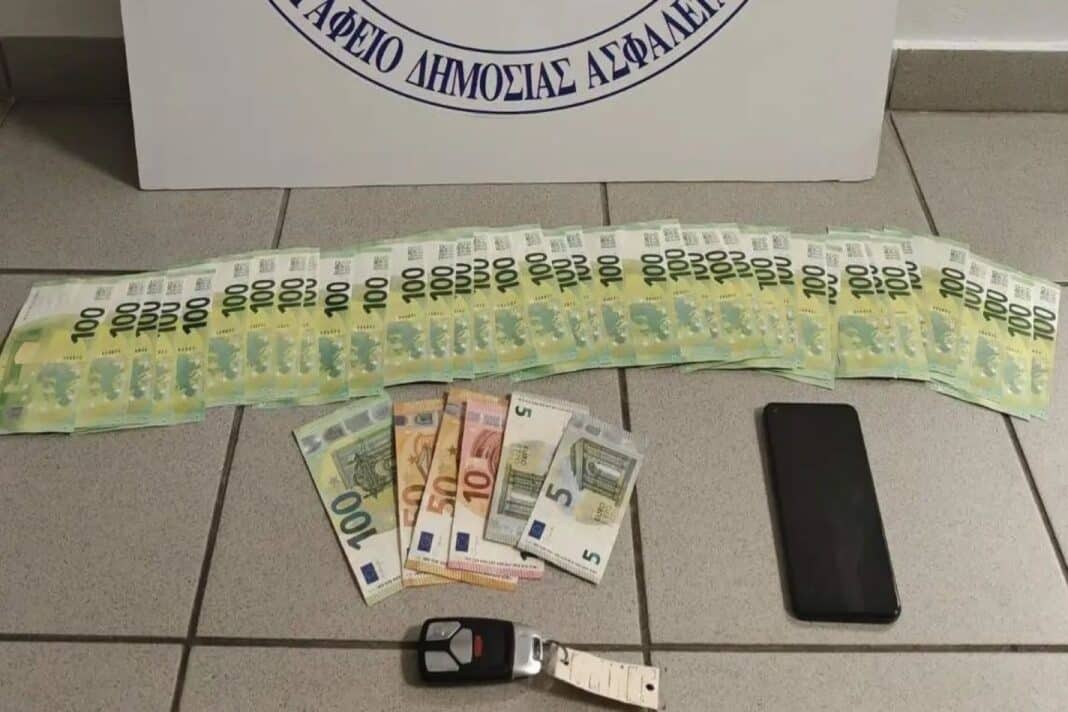 Στην κατοχή του βρέθηκαν συνολικά 38 χαρτονομίσματα των 100 ευρώ, αμφιβόλου γνησιότητας, ενώ η αστυνομική έρευνα συνεχίζεται τόσο για την ταυτοποίηση των στοιχείων του συνεργού του όσο και για τυχόν συμμετοχή τους σε παρόμοιες πράξεις, όπως αναφέρεται στην ίδια ανακοίνωση.