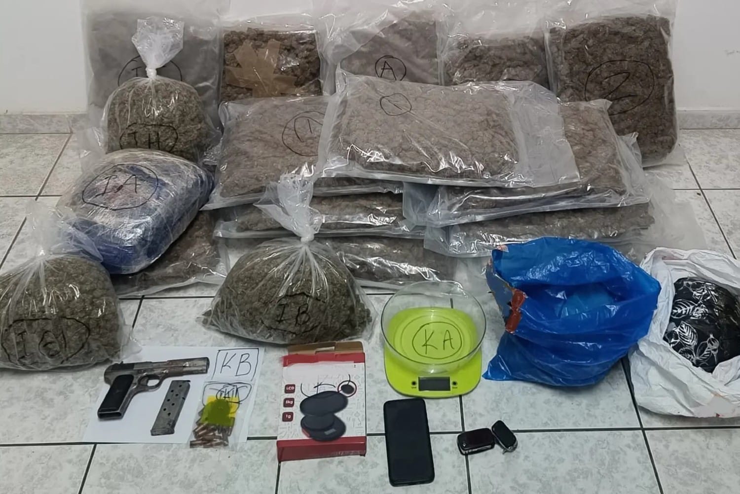 - 13 συσκευασίες με κοκαΐνη, συνολικού βάρους 1 κιλού και 89 γραμμαρίων,