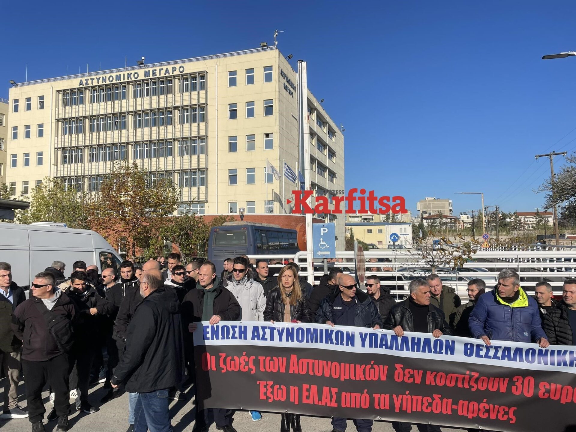 Μέλη της Ένωσης Αστυνομικών Υπαλλήλων Θεσσαλονίκης, συγκεντρώθηκαν έξω από το αστυνομικό Μέγαρο, κρατώντας πανό το οποίο έγραφε «Οι ζωές των αστυνομικών δεν κοστίζουν 30€. Έξω η ΕΛ.ΑΣ από τα γήπεδα αρένες», για να διαμαρτυρηθούν για τον τραυματισμό του αστυνομικού.
