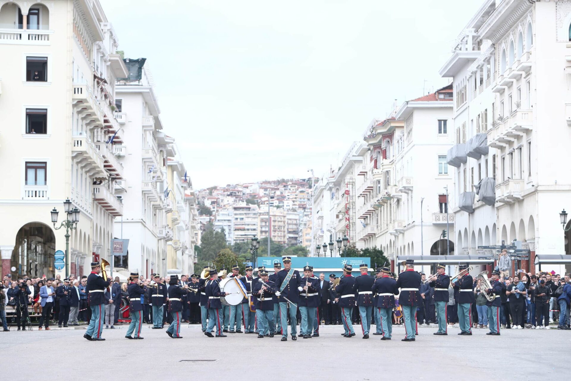 Στην πλατεία Αριστοτέλους παραβρέθηκαν για την επίδειξη της ΣΣΑΣ αλλά και των μπαντών των τριών Σωμάτων των Ενόπλων Δυνάμεων, ο αρχηγός του Γενικού Επιτελείου Εθνικής ‘Αμυνας ΓΕΕΘΑ στρατηγός Κωνσταντίνος Φλώρος, ο περιφερειάρχης Κεντρικής Μακεδονίας Απόστολος Τζιτζικώστας, ο συντονιστής κοινοβουλευτικής ομάδας της ΝΔ, Σταύρος Καλαφάτης και οι τρεις αρχηγοί Στρατού, Πολεμικής Αεροπορίας και Ναυτικού.
