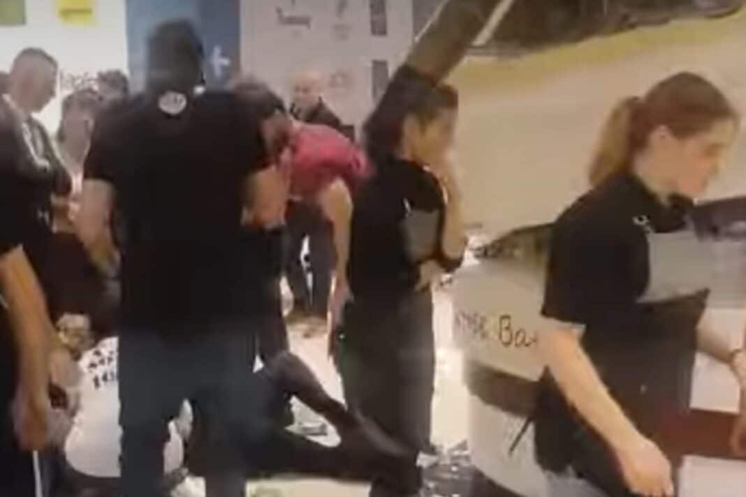 Στο βίντεο που εξασφάλισε το emakedonia.gr φαίνεται ξεκάθαρα να πέφτει η οροφή με τον κόσμο να αιφνιδιάζεται.