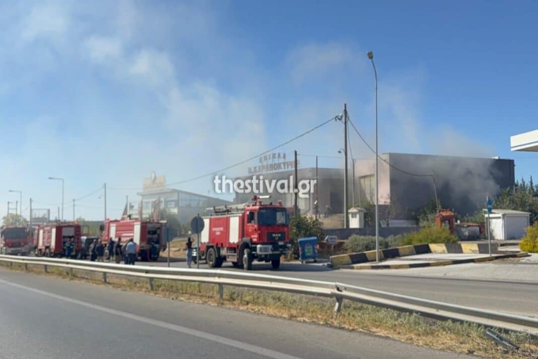 Μάλιστα από τη φωτιά τραυματίστηκε ένας υπάλληλος της επιχείρησης και μεταφέρθηκε στο Κέντρο Υγείας Θέρμης.