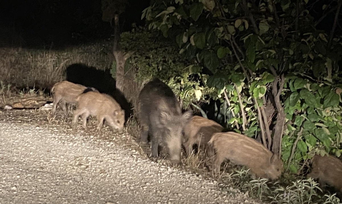 Τα αγριογούρουνα επελαύνουν σε πολυσύχναστους δρόμους των Πεύκων, όπου κυκλοφορούν πεζοί και βρίσκονται κατοικίες.