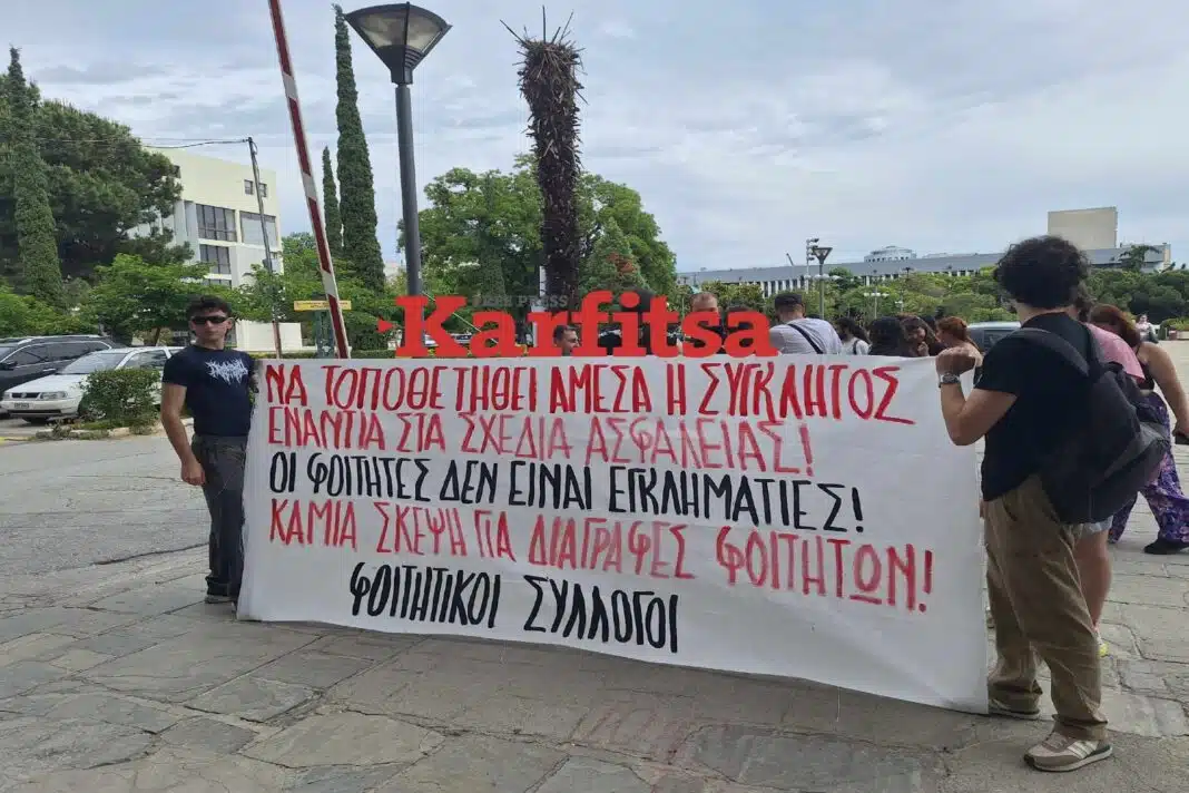 Κατά των νέων μέτρων ασφαλείας που εξετάζει η κυβέρνηση και το υπουργείο Παιδείας για τα πανεπιστημιακά ιδρύματα, τάσσονται φοιτητές και μέλη φοιτητικών συλλόγων, τα οποία πραγματοποίησαν διαμαρτυρία έξω από την πρυτανεία του Αριστοτελείου Πανεπιστημίου Θεσσαλονίκης (ΑΠΘ) το μεσημέρι της Τετάρτης (21/5).