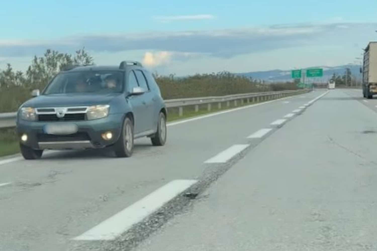 Στο βίντεο του livemediagr φαίνεται το όχημα να κινείται αντίθετα στο ρεύμα με αναμμένα τα αλάρμ του αυτοκινήτου.