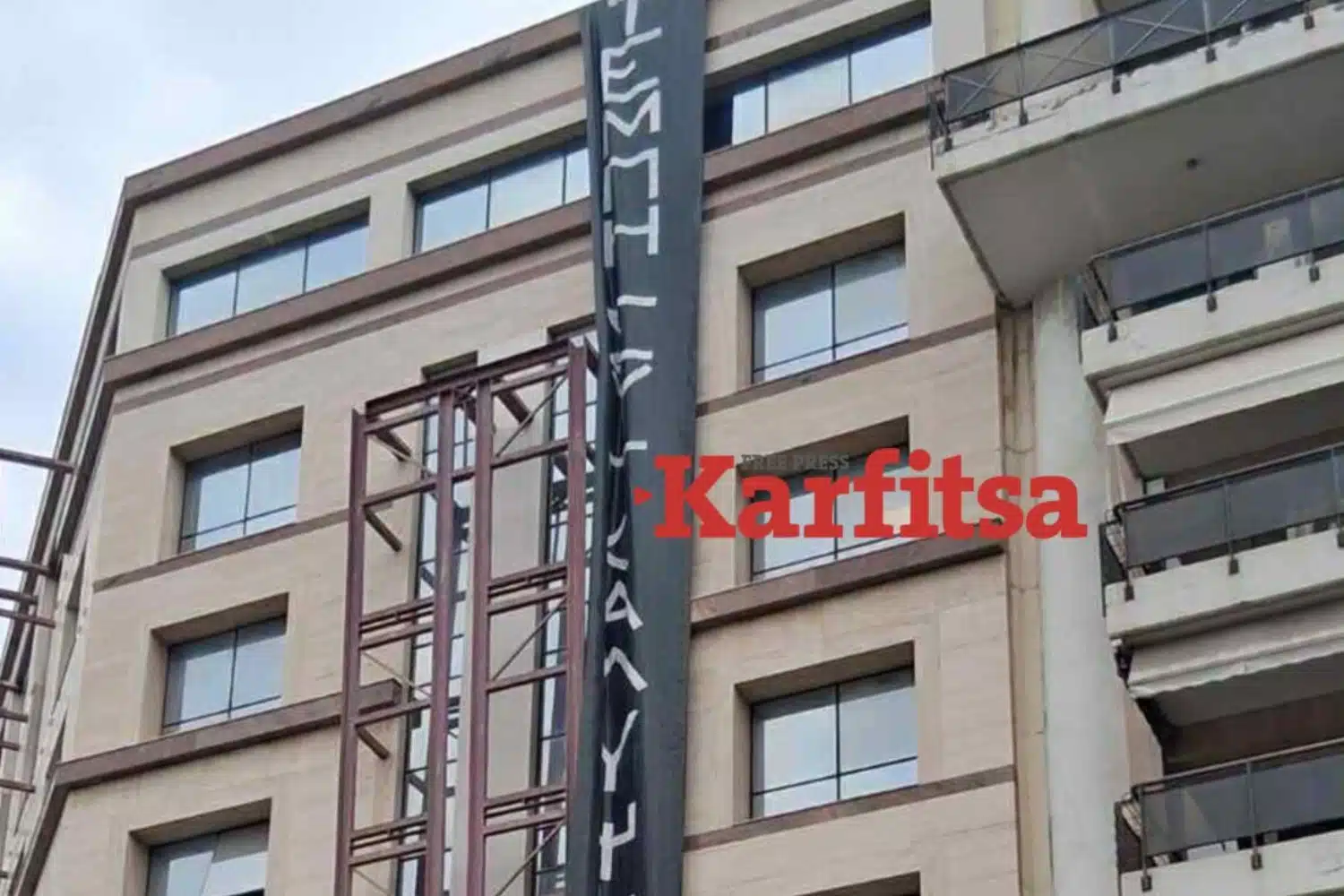 Το πανό έγραφε «Τέμπη Συγκάλυψη», ενώ τα μέλη της αντιεξουσιαστικής ομάδας πέταξαν έξω από το κτίριο τρικάκια που έγραφαν «Τα κέρδη τους, οι ζωές μας».