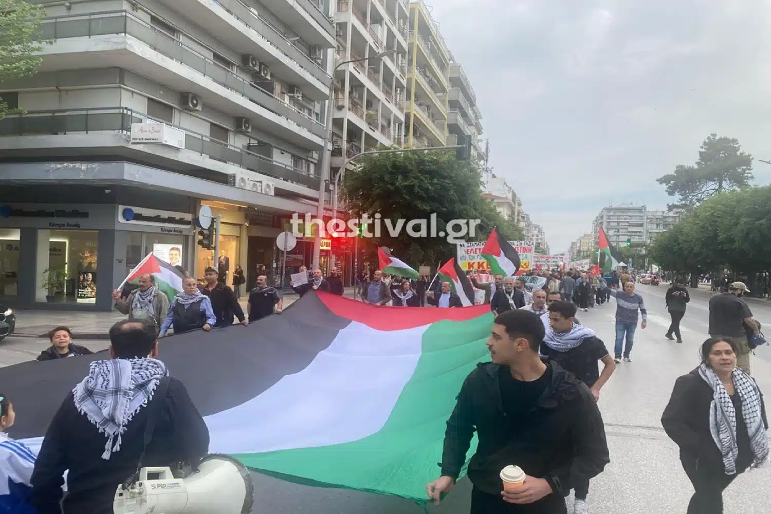 Πορεία αλληλεγγύης στον Παλαιστινιακό λαό πραγματοποίησαν πολίτες στο κέντρο της Θεσσαλονίκης.