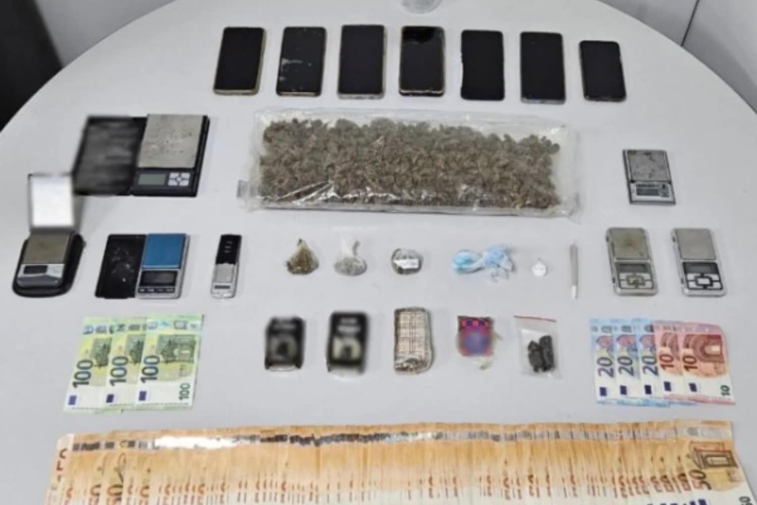 Από τις έρευνες που πραγματοποιήθηκαν σε οικίες και υπαίθριο- εξωτερικό χώρο, ο οποίος χρησιμοποιούνταν για την απόκρυψη ναρκωτικών ουσιών, με τη συνδρομή του Τμήματος Συνοδών Αστυνομικών Σκύλων της Υποδιεύθυνσης Ειδικών Αστυνομικών Δυνάμεων Βορείου Ελλάδος, μεταξύ άλλων, βρέθηκαν και κατασχέθηκαν: