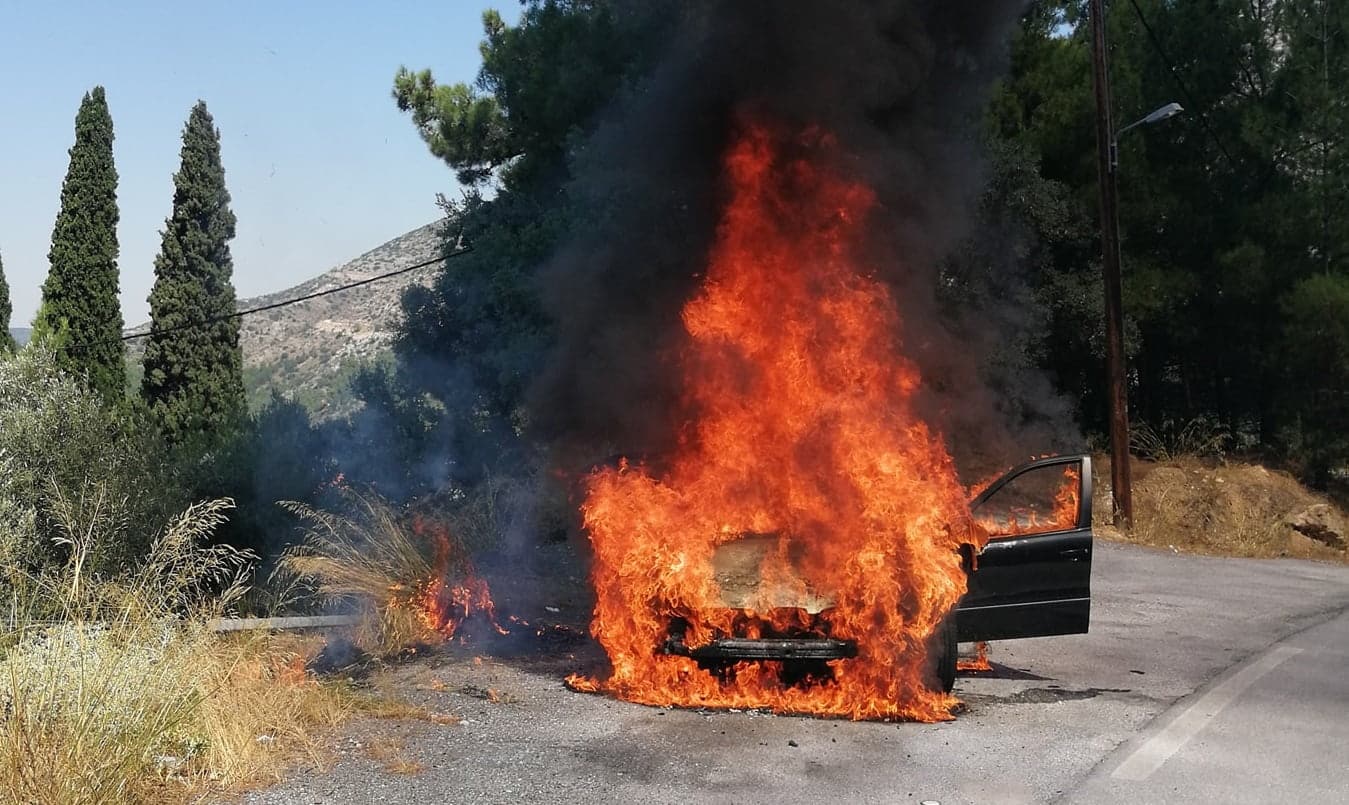 Θεσσαλονίκη: Στις φλόγες «τυλίχθηκε» αυτοκίνητο τα ξημερώματα κοντά στο αεροδρόμιο