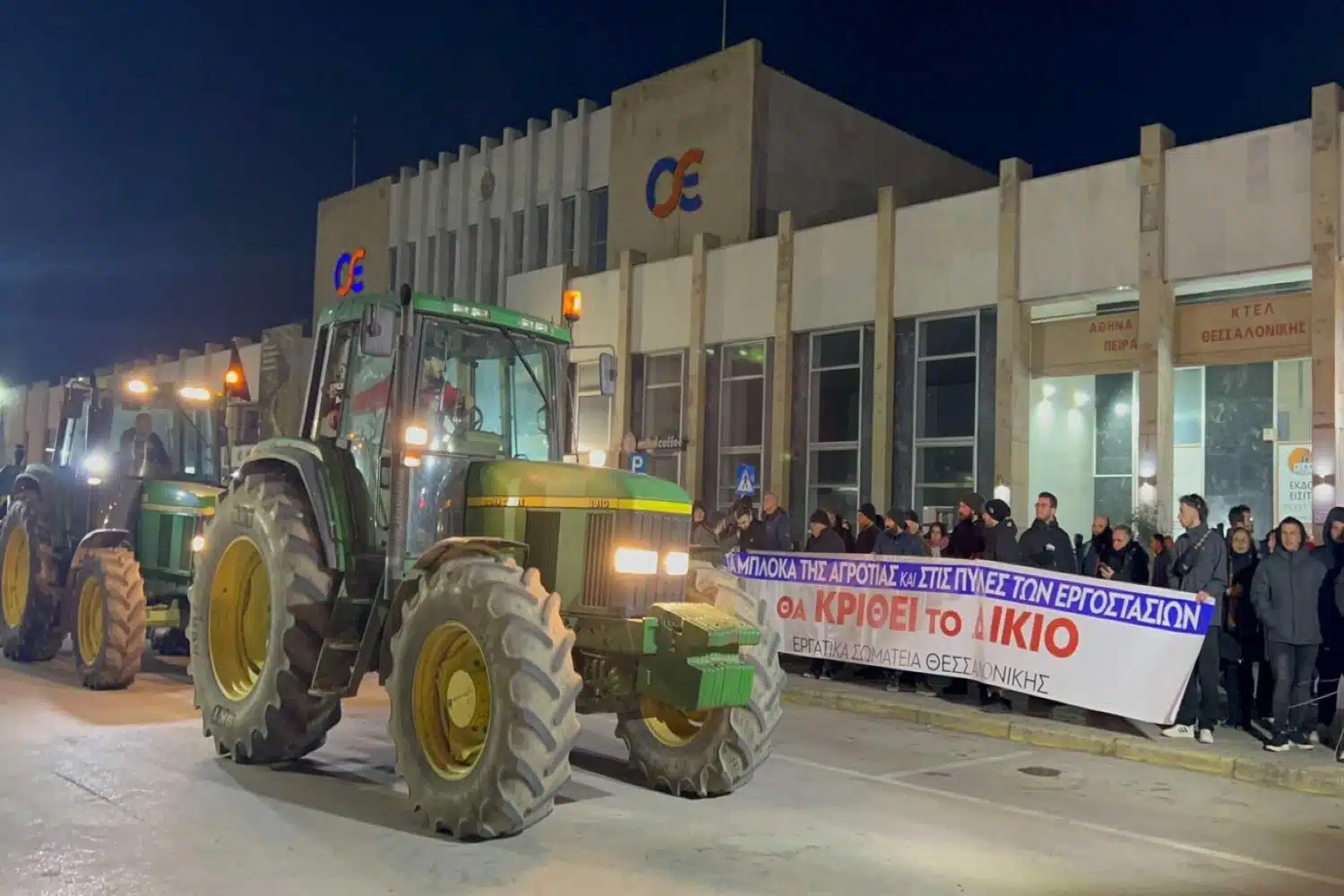 Στον Νέο Σιδηροδρομικό σταθμό Θεσσαλονίκης κατέφτασαν δεκάδες τρακτέρ από Θεσσαλία, Κατερίνη και Μάλγαρα, λίγα μόλις χιλιόμετρα από το ξενοδοχείο όπου θα εκφωνήσει σε λίγη ώρα την ομιλία του ο πρωθυπουργός, Κυριάκος Μητσοτάκης.