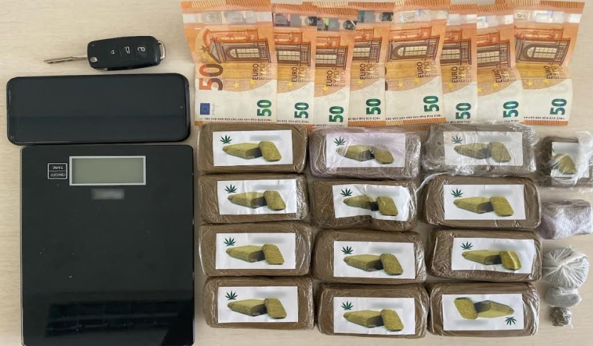 Συνολικά κατασχέθηκαν 1.262,2 γραμμάρια κατεργασμένης κάνναβης και 5,5 γραμμάρια κάνναβης.