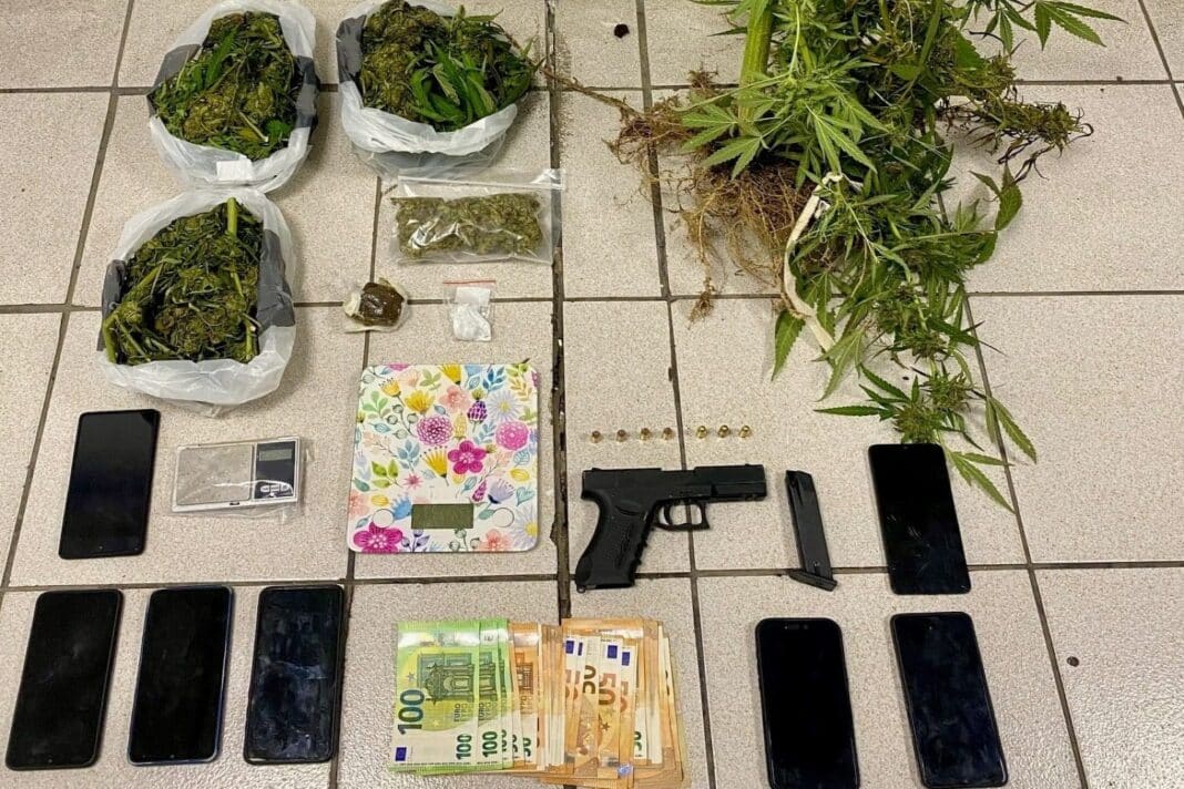 Σε αποθήκη που χρησιμοποιούσαν, βρέθηκαν και κατασχέθηκαν φυτικά αποσπάσματα κάνναβης, βάρους 1 κιλού και 158 γραμμαρίων.