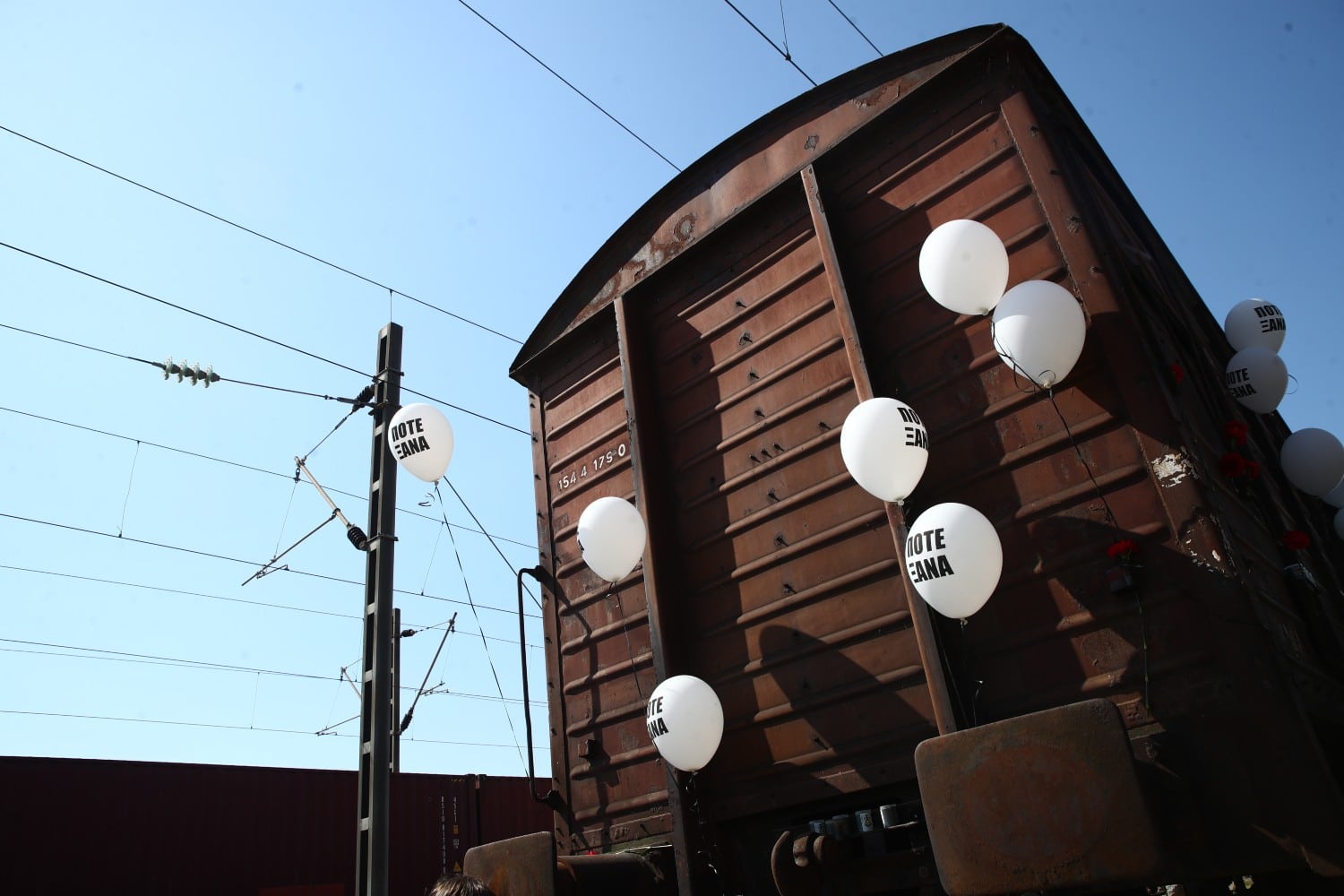 Εκεί, σε μια λιτή τελετή, η επιζήσασα του Ολοκαυτώματος, Λόλα Άντζελ, απόγονοι των θυμάτων αλλά και εκπρόσωποι της πολιτικής σκηνής και της αυτοδιοίκησης, άφησαν αναμμένα κεράκια και λουλούδια στις ράγες και σε βαγόνια τρένων, τιμώντας τη μνήμη των 50.000 Εβραίων της Θεσσαλονίκης που εξοντώθηκαν στο στρατόπεδο Άουσβιτς- Μπέργκεναου.