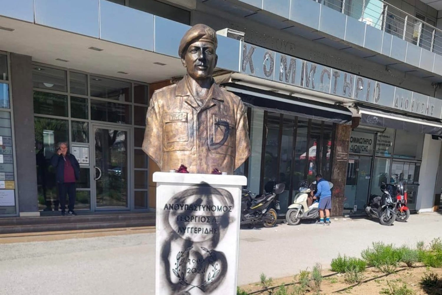 Άγνωστοι βανδάλισαν την προτομή του αδικοχαμένου αστυνομικού Γιώργου Λυγγερίδη, που βρίσκεται στο κέντρο της Θεσσαλονίκης.