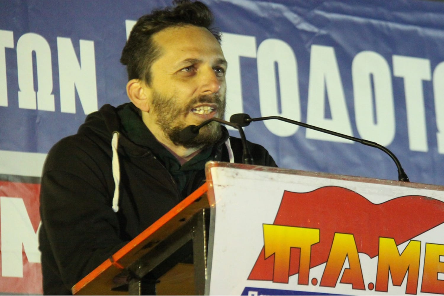 Η Γραμματεία του ΠΑΜΕ εκφράζει τα συλλυπητήριά της στην οικογένειά του, τη σύντροφό του Μαρία και την κόρη του Λένα».