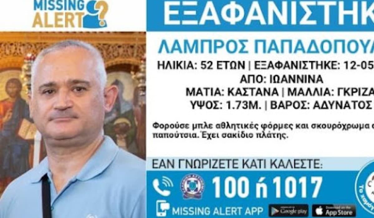 Σε θρίλερ εξελίσσεται η εξαφάνιση του 52χρονου αστυνομικού από τα Ιωάννινα. Παρά τις έρευνες που γίνονται από νωρίς το απόγευμα της Παρασκευής μέχρι στιγμής δεν έχει εντοπιστεί κανένα ίχνος του.