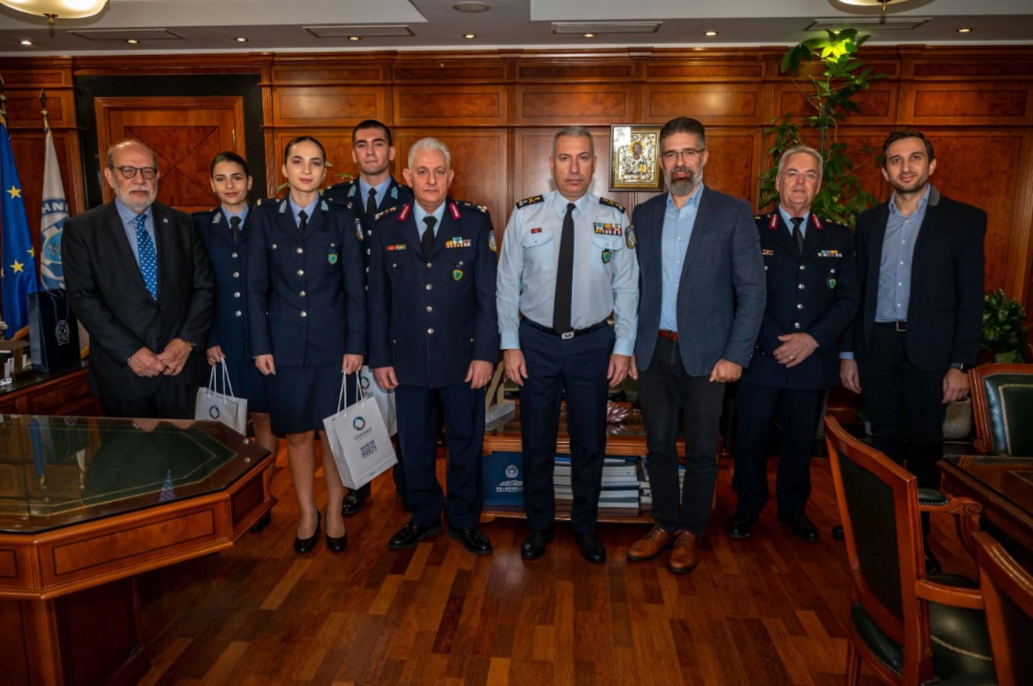 Εξέφρασε επιπλέον τις θερμές ευχαριστίες του προς τους εκπροσώπους της εταιρείας για την ανιδιοτελή πρωτοβουλία και τη σημαντική συμβολή τους στην ενίσχυση των νέων αποφοίτων της Σχολής Αστυφυλάκων.