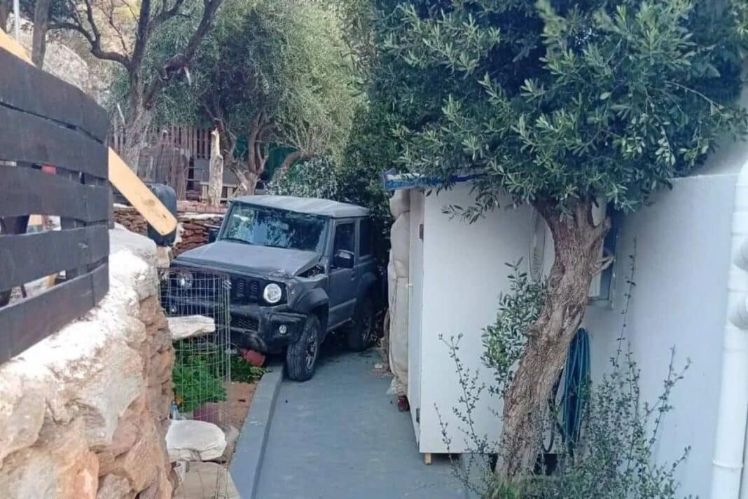 Σύμφωνα με το tinostoday.gr, τα ξημερώματα, ένα όχημα τύπου τζιπ, το οποίο ήταν σταθμευμένο, παρασύρθηκε από δυνατούς ανέμους και έφυγε από το δρόμο, καταλήγοντας μέσα σε κατοικία που βρίσκεται από κάτω.