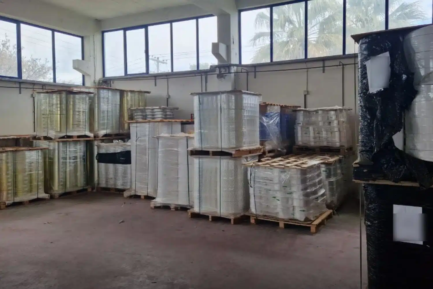 - μεγάλες ποσότητες πρώτων υλών, ειδών τυποποίησης και συσκευασίας τσιγάρων, όπως χάρτινων αναπτυγμάτων (ετικέτες) πακέτων για συσκευασία τσιγάρων, αναπτύγματα χαρτοκιβωτίων – boxγια την αποθήκευση 500 πακέτων τσιγάρων, έκαστο χαρτοκιβώτιο (box, sticks φίλτρων τσιγάρου, μπιτόνια υγρής κόλλας, πομπίνες (ρολά) αλουμινόχαρτου ασημί/χρυσού χρώματος, πρόσφορου για χρήση στην παραγωγή πακέτων τσιγάρων, κύλινδροι ζελατίνας πρόσφορης για την περιτύλιξη δεκάδας πακέτων τσιγάρων («στέκας»), φιλτράκια, πομπίνες (ρολά) χάρτινου λαιμού πακέτου τσιγάρων, τελάρα μεταφοράς τεμαχίων τσιγάρων, ρολά κ.ά.
