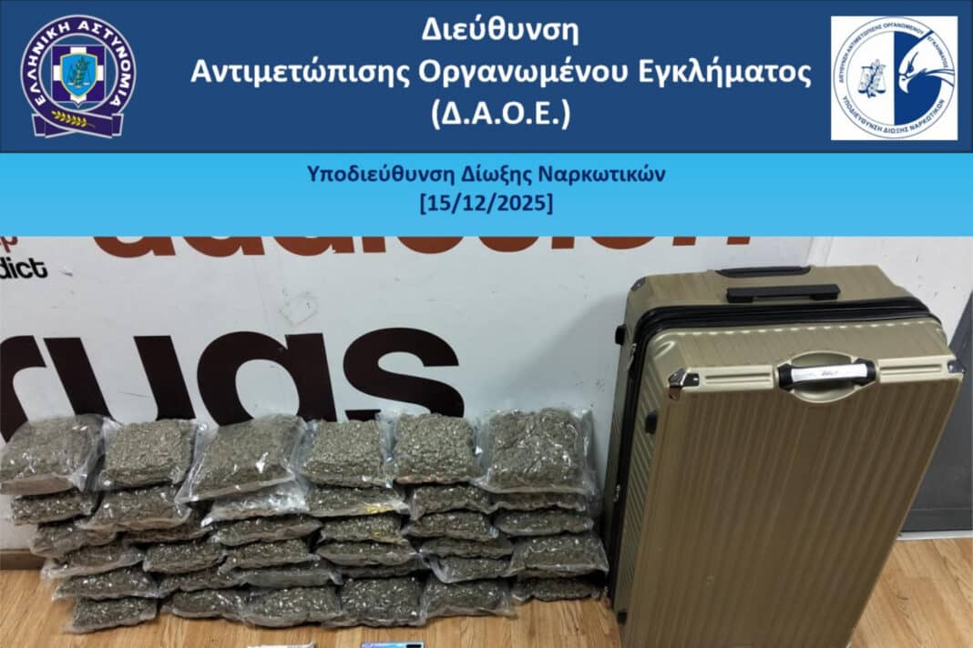 Στο πλαίσιο συντονισμένης επιχείρησης της Υποδιεύθυνσης Δίωξης Ναρκωτικών, συνελήφθη 23χρονος αλλοδαπός, ο οποίος φέρεται να δρα ως μέλος διεθνικής εγκληματικής ομάδας, έχοντας στις αποσκευές του περισσότερα από 18,5 κιλά κάνναβης τύπου SKUNK, με σκοπό την περαιτέρω διακίνησή τους.