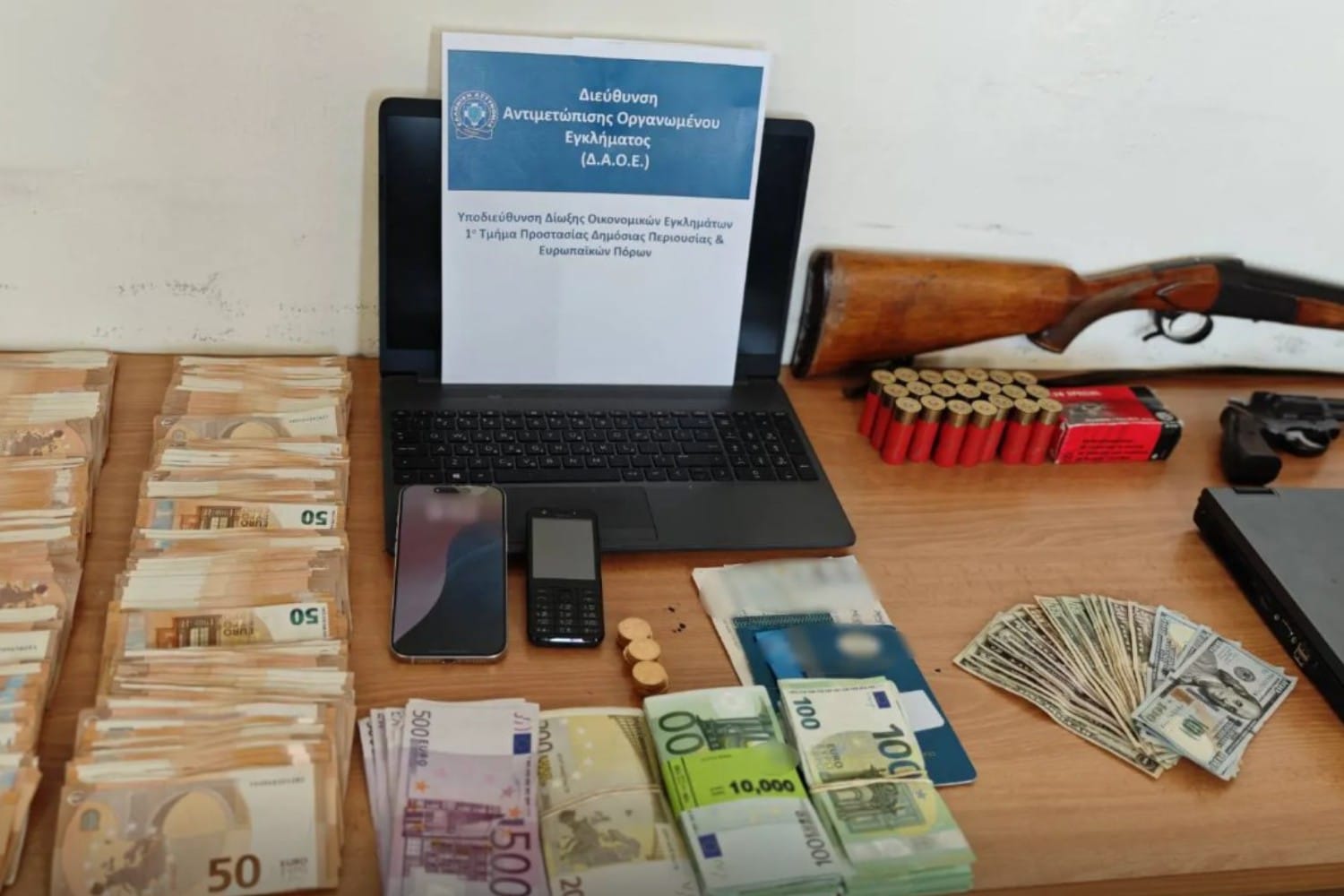 Από τις έρευνες που πραγματοποιήθηκαν σε οικίες, λογιστικά γραφεία, κελί κράτησης εντός σωφρονιστικού καταστήματος, γραφεία σε ποδοσφαιρικό γήπεδο και οχήματα, με τη συνδρομή Επιχειρησιακών Ομάδων της Διεύθυνσης Αντιμετώπισης Οργανωμένου Εγκλήματος, καθώς και εξειδικευμένων στελεχών της Διεύθυνσης Εγκληματολογικών Ερευνών, βρέθηκαν μεταξύ άλλων και κατασχέθηκαν: