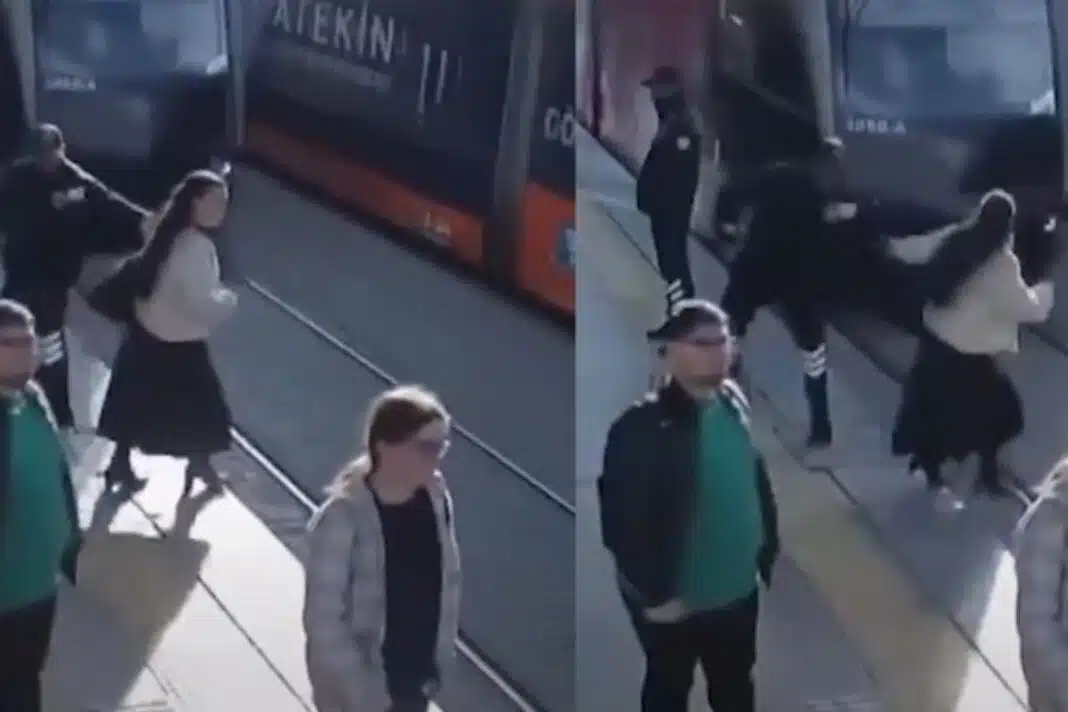 Λίγα δευτερόλεπτα παραπάνω και μια γυναίκα στην Τουρκία θα είχε βρεθεί κάτω από τις γραμμές του τραμ, αν δεν είχε παρέμβει σωτήρια ένας άνδρας που την τράβηξε.
