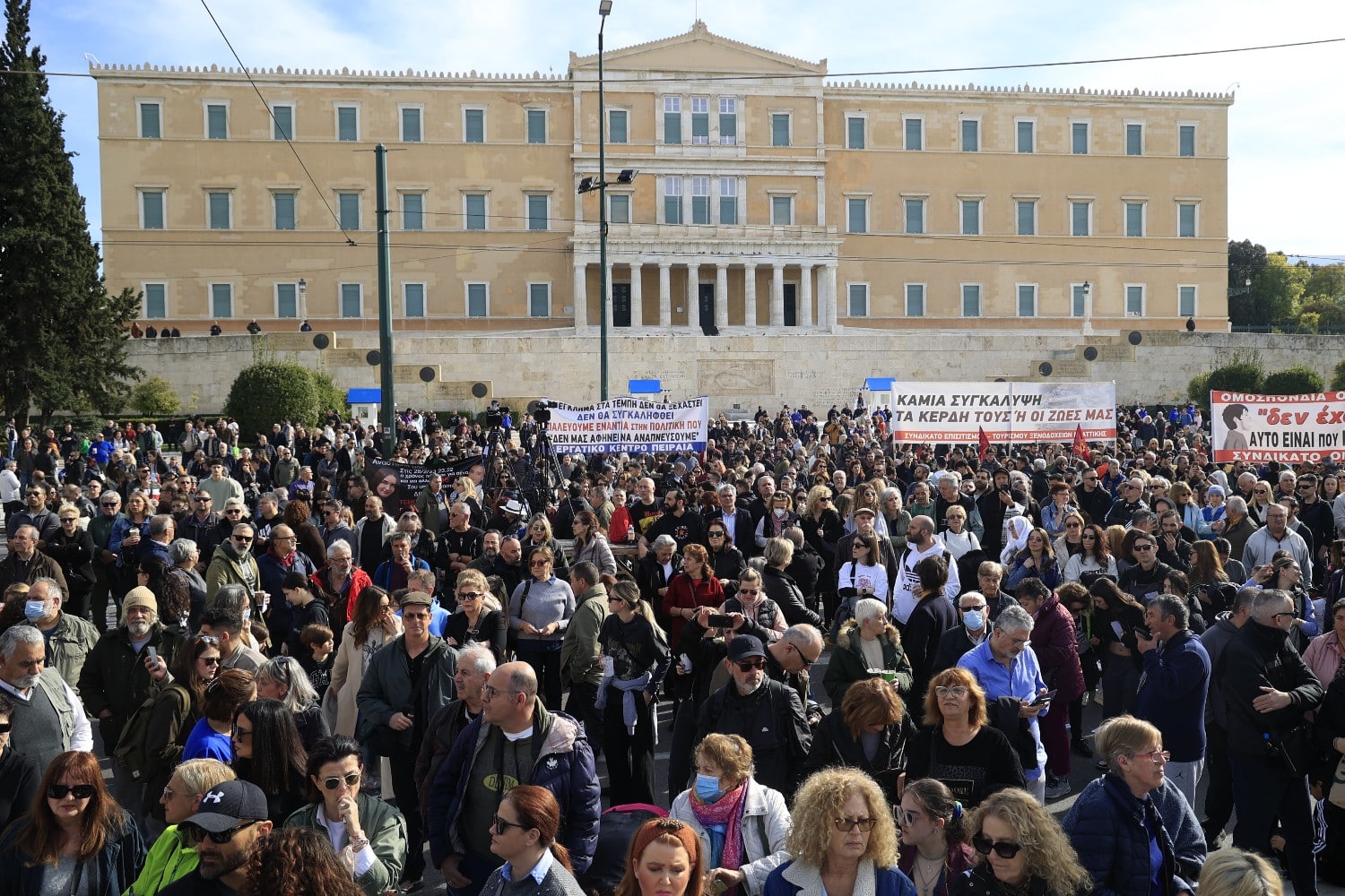 Από νωρίς η πλατεία Συντάγματος κατακλύζεται από απλούς ανθρώπους, φορείς, οργανώσεις και συνδικάτα.