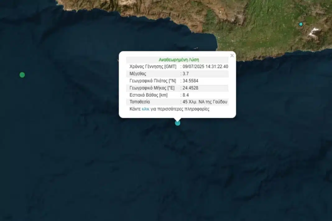 Τρεις σεισμικές δονήσεις σημειώθηκαν σε θαλάσσιο χώρο νότια της Κρήτης, σύμφωνα με τις μετρήσεις του Γεωδυναμικού Ινστιτούτου.