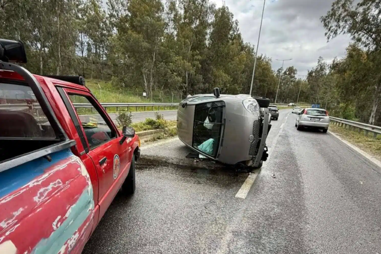 Το αυτοκίνητο πέρασε πάνω από το διαχωριστικό και κατέληξε στο αντίθετο ρεύμα κυκλοφορίας, αναποδογυρίζοντας στη μέση του δρόμου.