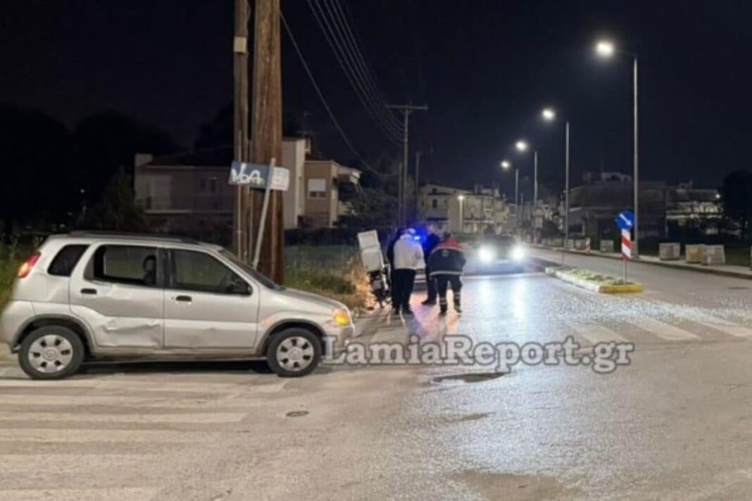 Σοβαρό τροχαίο ατύχημα με μηχανάκι και ΙΧ σημειώθηκε γύρω στις 21:40 το βράδυ της Κυριακής (15/3) στη διασταύρωση Μητροπολίτου Δαμασκηνού και Μάνου Κατράκη στα Καλύβια Λαμίας.