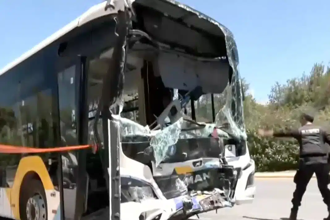 Στη συνέχεια, ένα άλλο λεωφορείο, κάτω από αδιευκρίνιστες συνθήκες, έπεσε με σφοδρότητα στο πίσω μέρος του προπορευόμενου λεωφορείου.