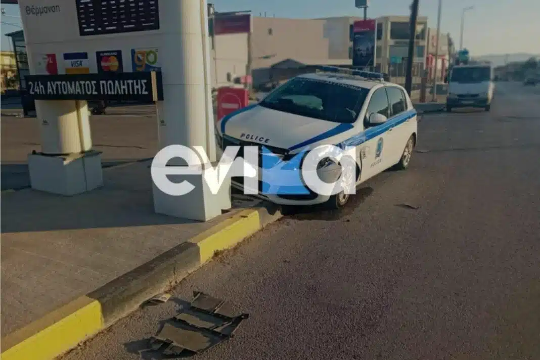 Τροχαίο με περιπολικό που καρφώθηκε σε κολώνα βενζινάδικου στη Χαλκίδα – Δείτε φωτογραφίες
