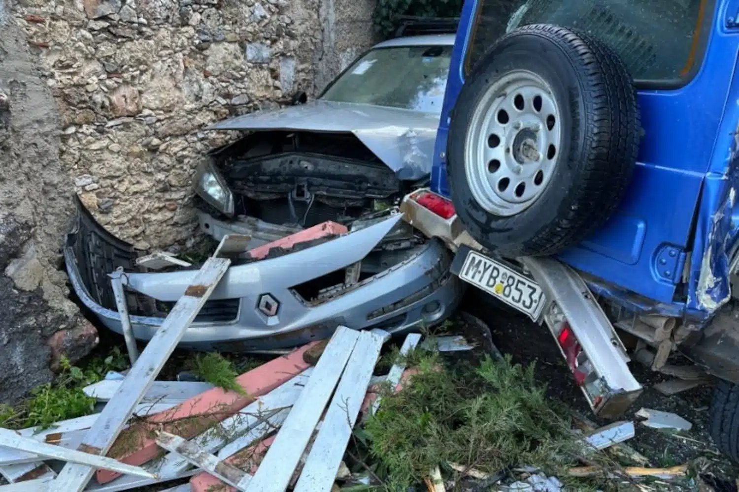 Η πορεία του φορτηγού δεν σταμάτησε εκεί, καθώς προσέκρουσε σε δύο ακόμη αυτοκίνητα στα δεξιά του καταστήματος τα οποία υπέστησαν σοβαρές ζημιές, πριν καταλήξει πάνω σε φράχτη και σε ένα μικρό δέντρο, το οποίο έσπασε από τη σύγκρουση, σύμφωνα με το stonisi.gr.