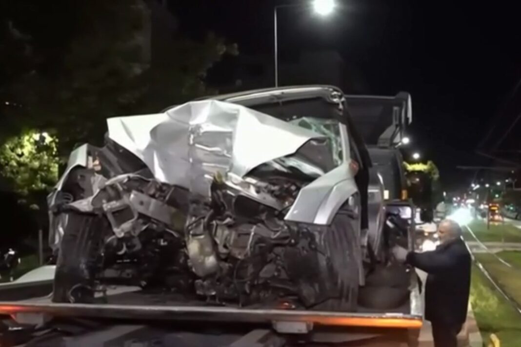 Το τροχαίο σημειώθηκε στη συμβολή των οδών Ελευθερίου Βενιζέλου και Αγνώστων Μαρτύρων, πάνω στη γραμμή του τραμ με ένα αυτοκίνητο να καρφώνεται σε κολώνα, αφού προσέκρουσε σε άλλο όχημα.