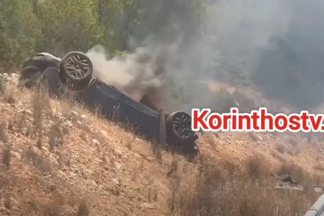 Ενα σοκαριστικό τροχαίο ατύχημα σημειώθηκε το μεσημέρι της Κυριακής (13/7), στον δρόμο προς την λίμνη Βουλιαγμένης Κορινθίας, όταν για άγνωστη αιτία ένα Ι.Χ αυτοκίνητο, εξετράπη της πορείας του και ανετράπη, με αποτέλεσμα να τυλιχθεί στις φλόγες.
