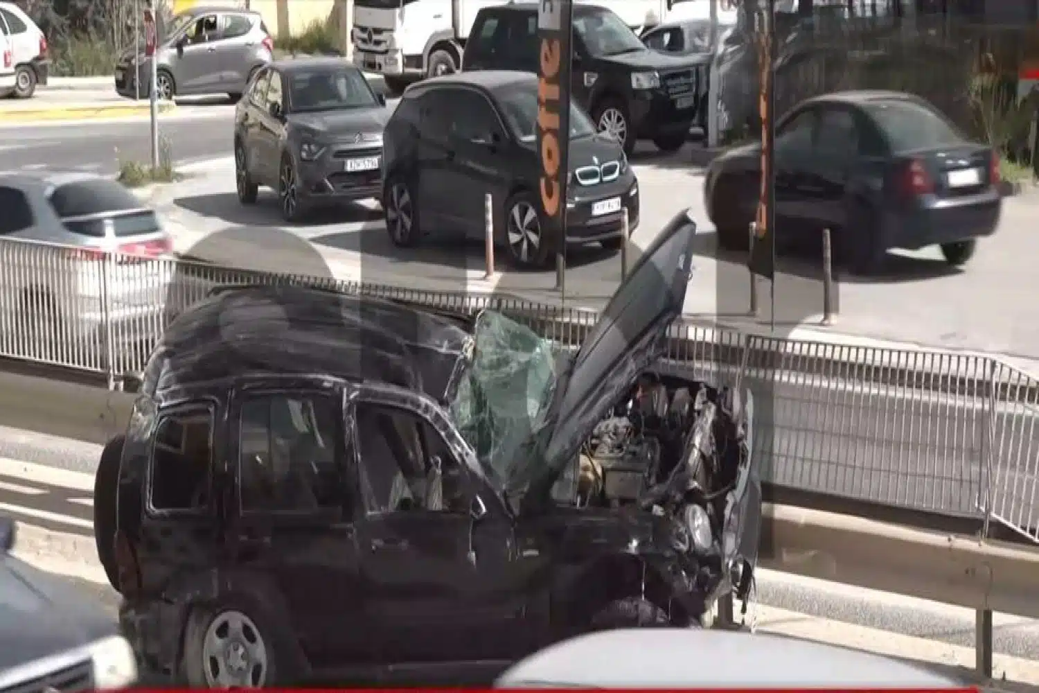 Στο βίντεο ντοκουμέντο που εξασφάλισε το Star, καταγράφονται σοκαριστικές εικόνες. Ο άτυχος ηλεκτρολόγος βρίσκεται στο οδόστρωμα και το αυτοκίνητό του καρφωμένο πάνω στα κιγκλιδώματα.
