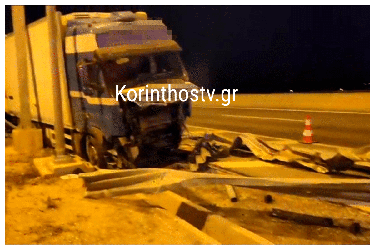 Χθες το βράδυ 1/8 διερχόμενη φορτηγό ψυγείο κινούμενη στην Εθνική οδό Κορίνθου–Πατρών στον Κόμβο Ξυλοκάστρου, ο οδηγός της έχασε τον έλεγχο του οχήματος, με αποτέλεσμα το φορτηγό να εκτραπεί της πορείας του και να προσκρούσει στις μπάρες.