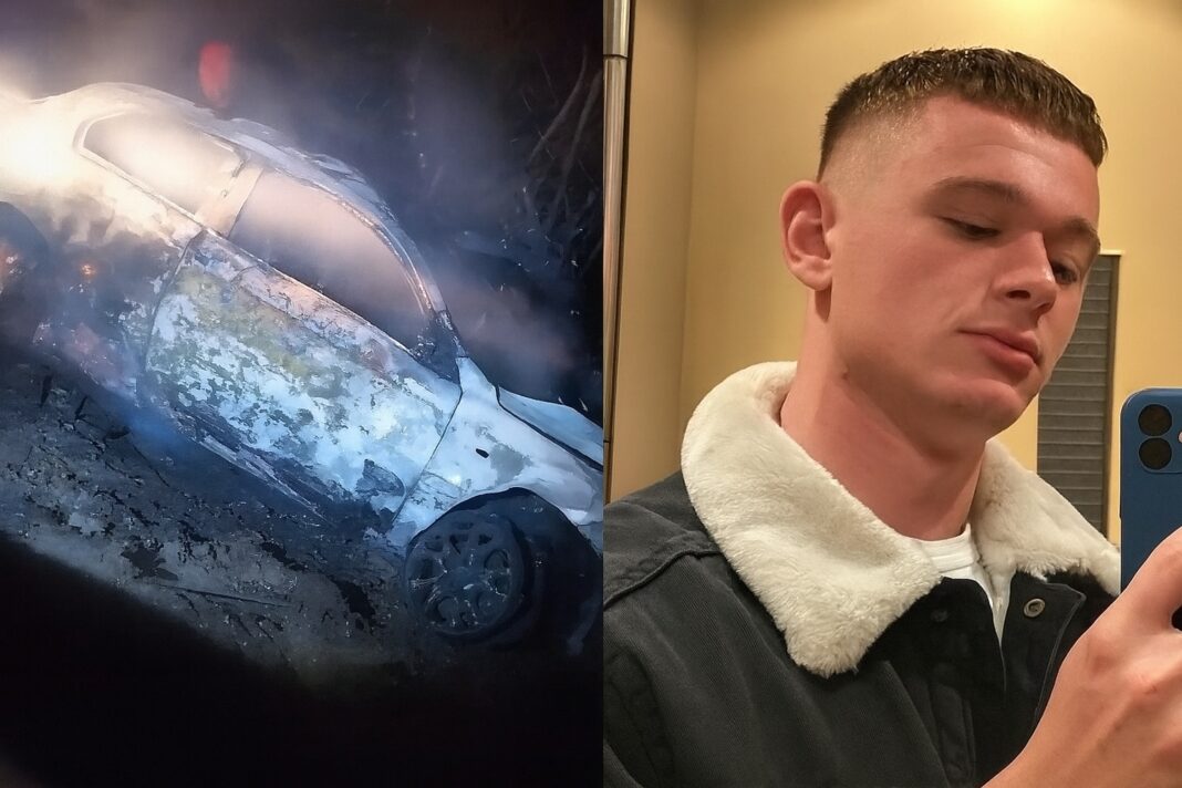 Ο άτυχος οδηγός εγκλωβίστηκε μέσα στο φλεγόμενο όχημα και κάηκε ζωντανός, ενώ η κοπέλα του διασώθηκε την τελευταία στιγμή, όταν εκτοξεύτηκε έξω από το παράθυρο επειδή δεν φορούσε ζώνη ασφαλείας.