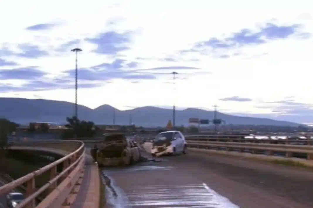 Συγκεκριμένα, όπως μετέδωσε η ΕΡΤ, μετά από σύγκρουση δύο οχημάτων το ένα τυλίχθηκε στις φλόγες και καταστράφηκε ολοσχερώς.