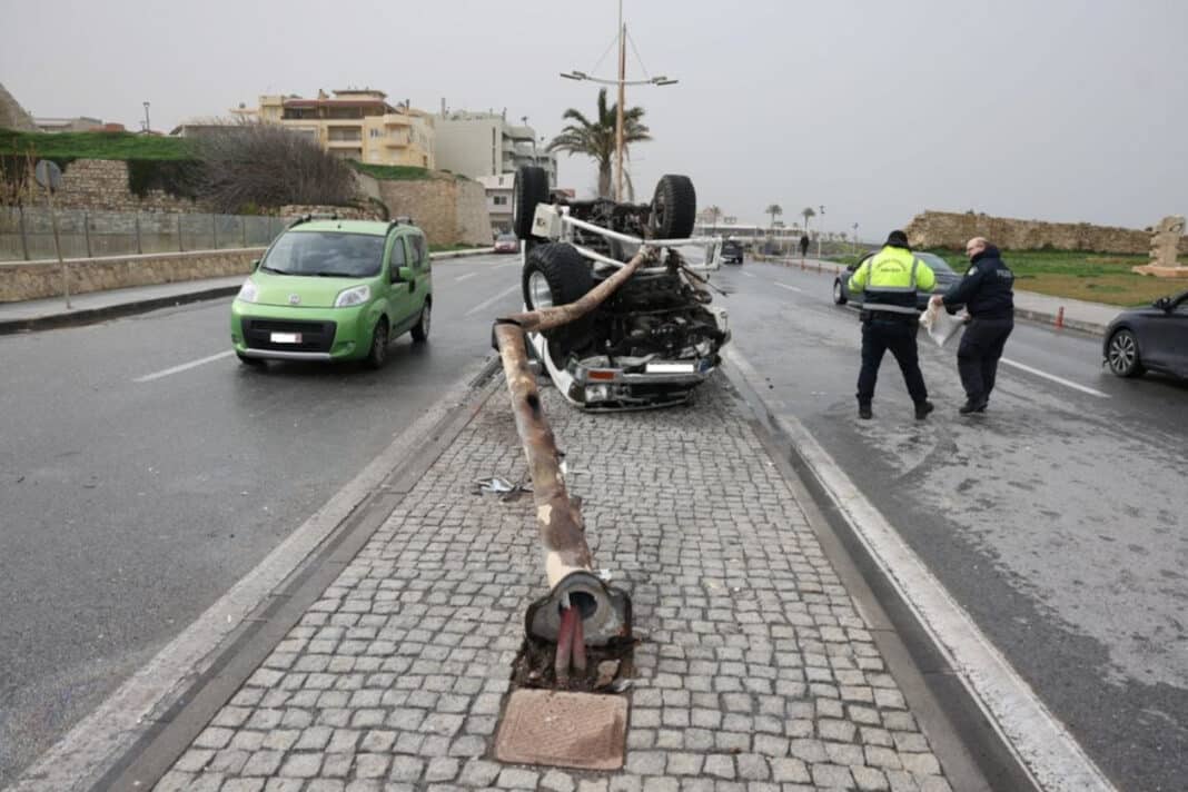 Σοβαρό τροχαίο ατύχημα σημειώθηκε νωρίτερα το μεσημέρι στην παραλιακή λεωφόρο του Ηρακλείου, όταν – υπό άγνωστες μέχρι στιγμής συνθήκες – αυτοκίνητο εξετράπη της πορείας του και ανετράπη.