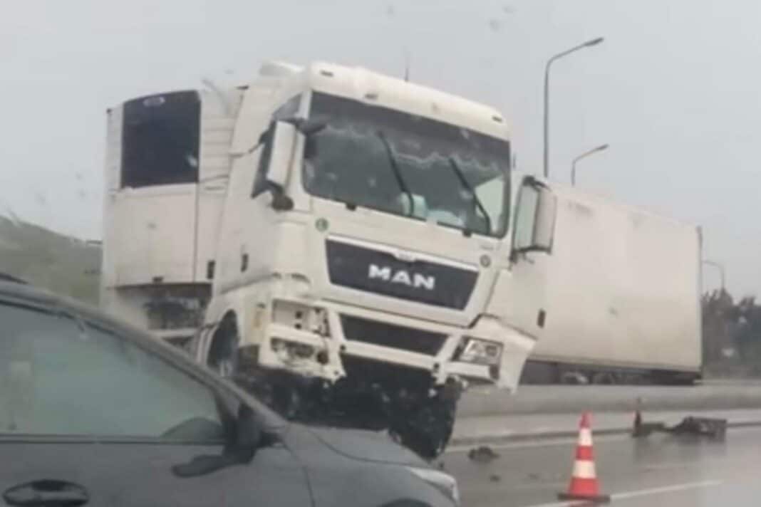 Τροχαίο ατύχημα σημειώθηκε πριν από λίγη ώρα στη Θεσσαλονίκη με μια νταλίκα που ξέφυγε της πορείας της.