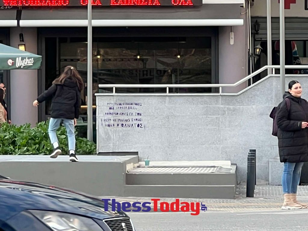 Ειδικότερα, άγνωστοι, σήμερα το απόγευμα, πέταξαν κόκκινες μπογιές πάνω στις τζαμαρίες του σταθμού Βενιζέλου, στο κέντρο της πόλης.